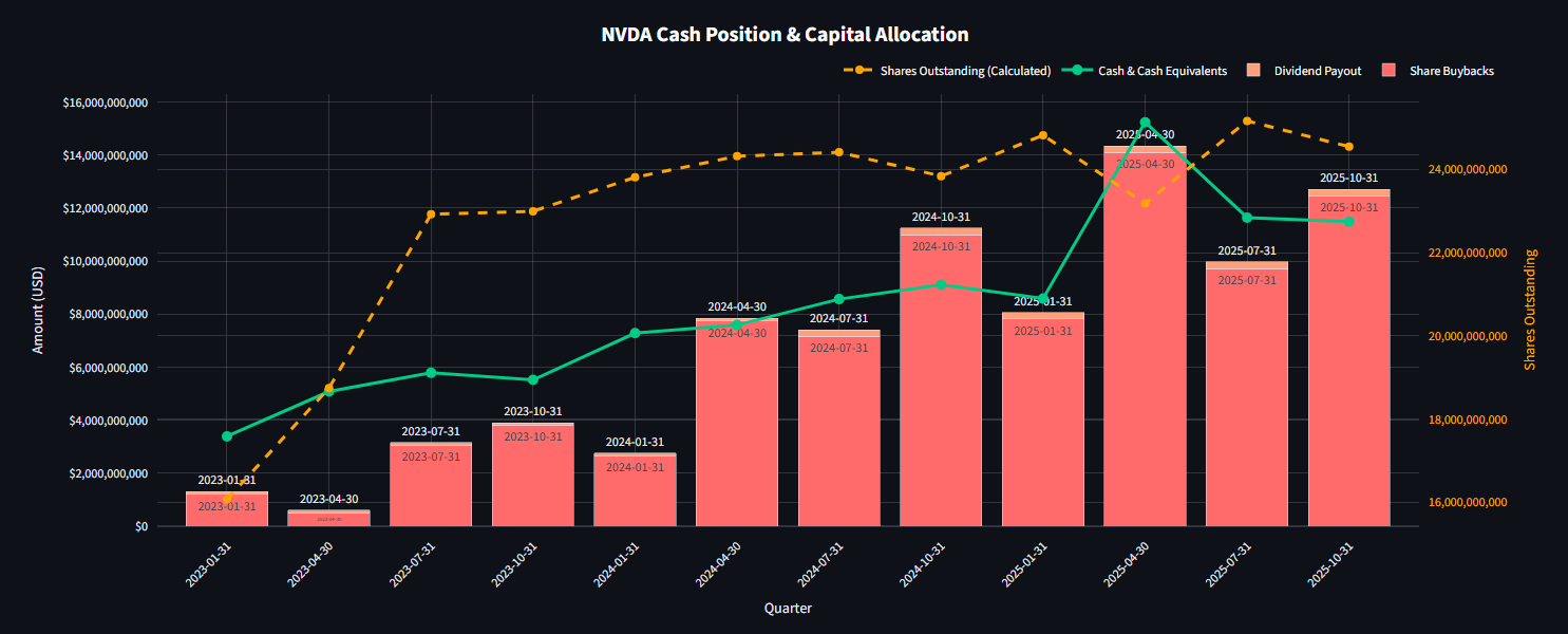 NVDA Cash, Share BuyBacks, Dividends, and Shares Outstandstanding