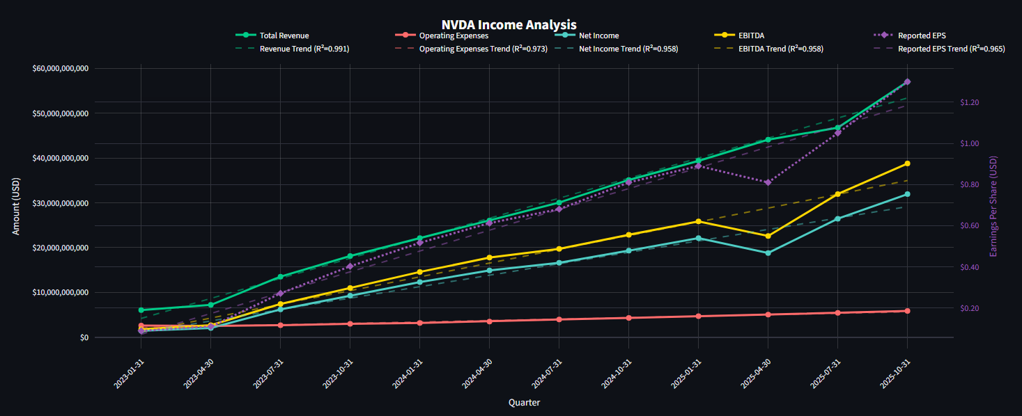 NVDA Income Statement with Trend lines